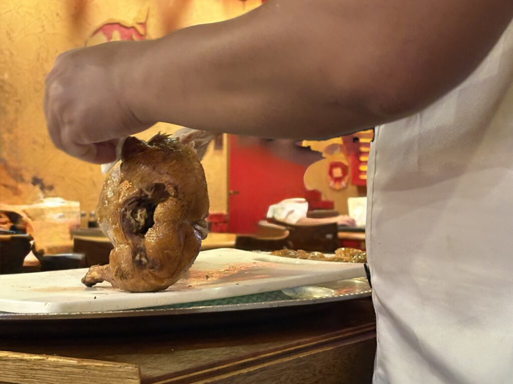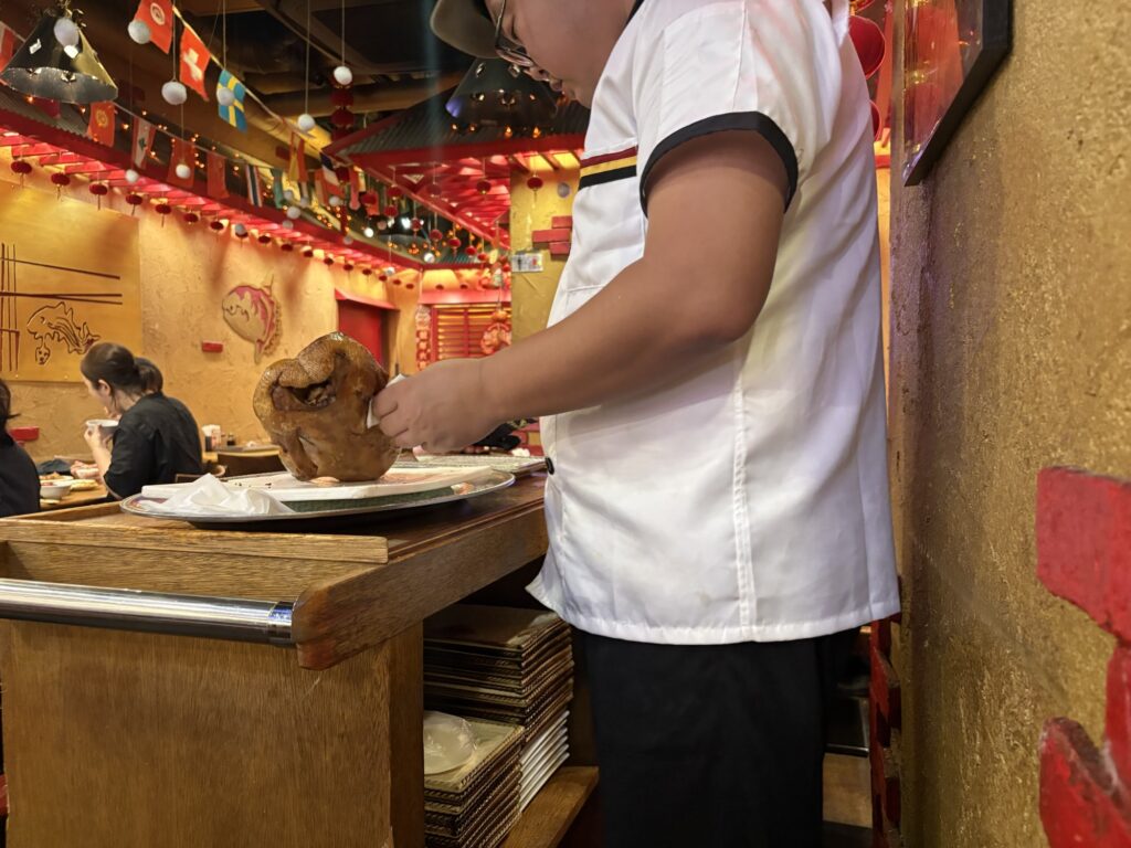そんな感じで北京ダック丸々1匹とその中身を調理したものを頼む。それだけでは寂しいのでチャーハンを、、、