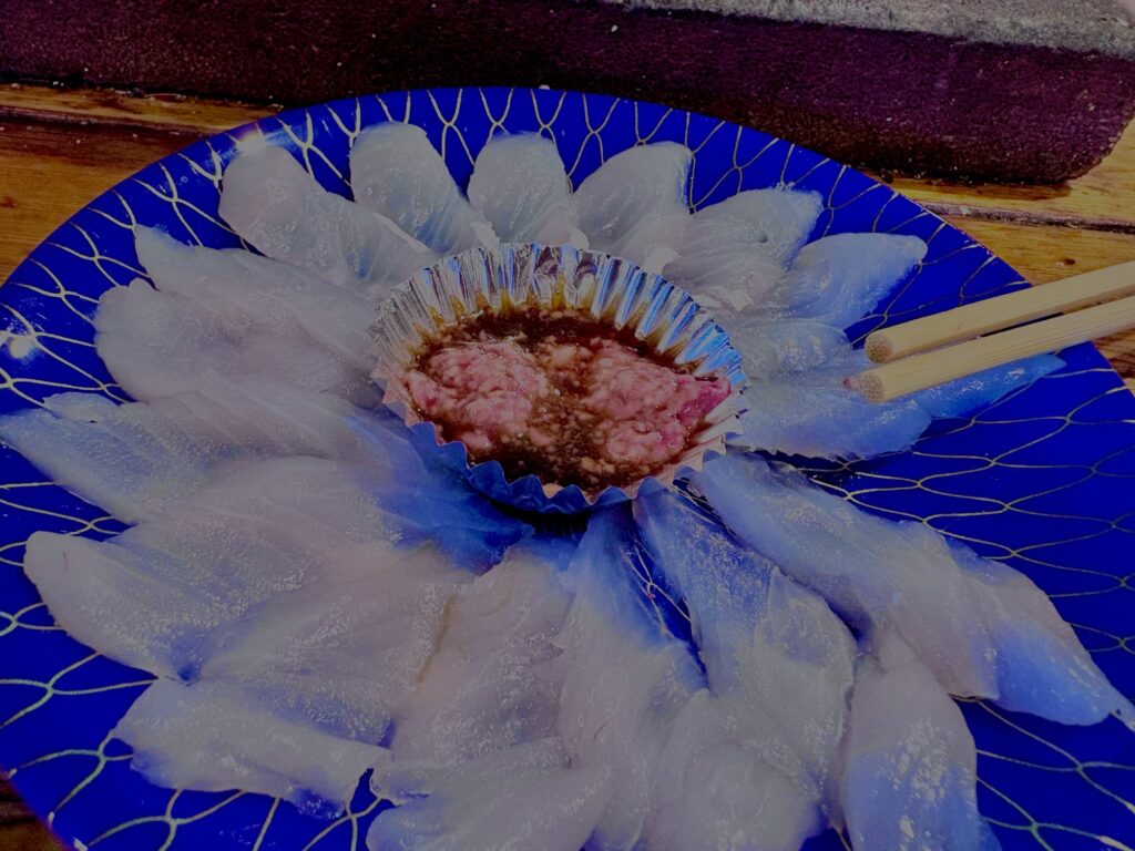 後フグの刺身置いてる店も多い。トラフグではないですけどね。