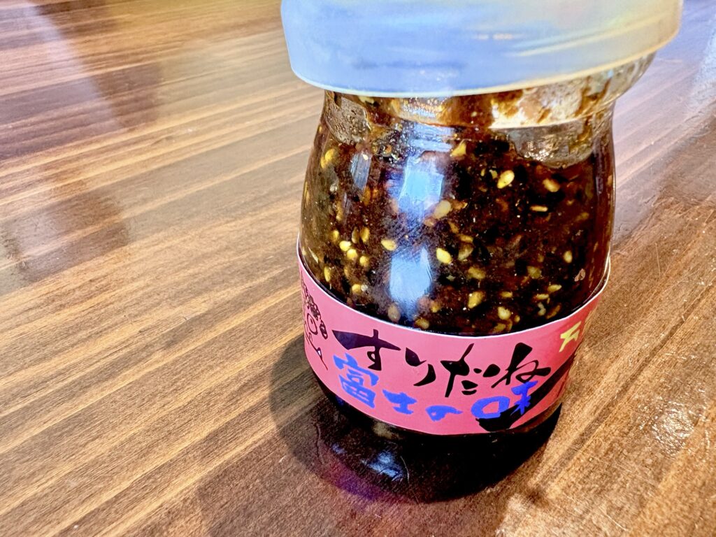店特製の辛いのがあるので【ほうとう】に入れるのもよし【馬刺し】や、【モツ煮】に入れるも良し