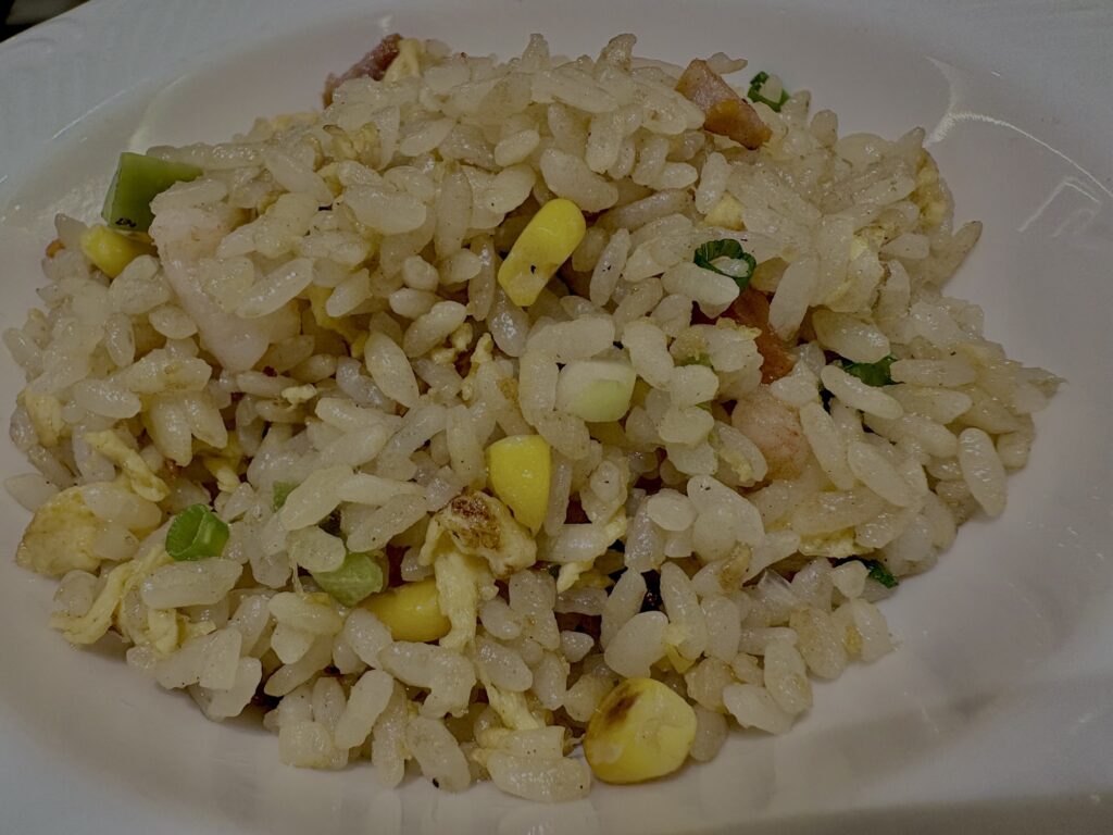 チャーハン。チャーハンに麻婆豆腐をあえて食べるとちょうどいい