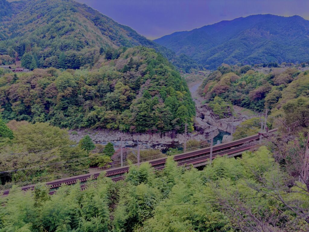 寝覚の床(ねざめのとこ)、木曽川と電車を眺めながら食べられる絶景のそば処です。大通り沿いにあるので発見は容易。隣はねざめ亭という店なのですが2025年閉店していたのが秋に復活していて、ここから寝覚の床に降りるには300円かかるとか?謎な感じ