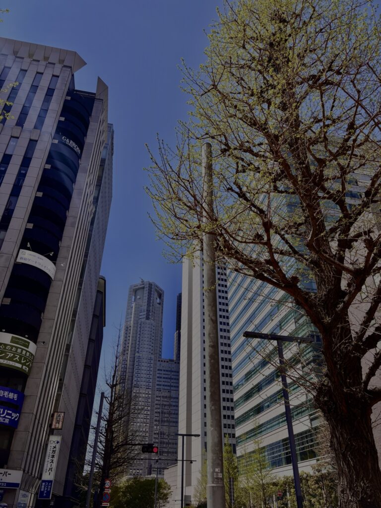 目の前から都庁が見える新宿西口の店の前