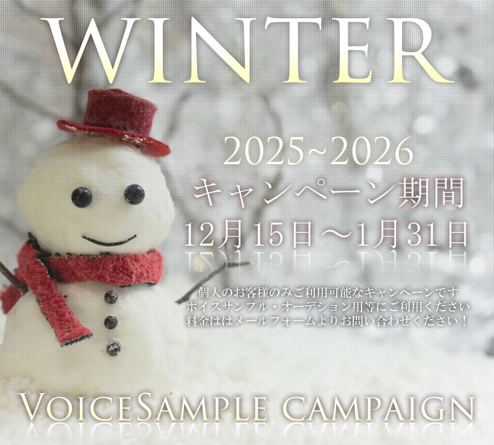 キャンペーン期間:12月15日~1月31日 個人のお客様に限り適用 ■ボイスサンプル・オーデション用等 金額はメールフォームよりお問い合わせください